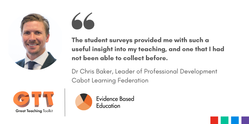 Set meaningful goals by triangulating insight from a suite of feedback tools – learner surveys, self-reflection survey and peer feedback survey, all providing feedback against dimensions and elements of the Model for Great Teaching. Highlight gaps and agreement between perceptions, to set specific goals and next steps.